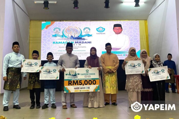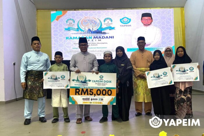 Papar, 25 Februari 2026 – Seramai 300 murid di daerah ini disantuni melalui Program Ramadan Madani YAPEIM dengan kerjasama Sekolah Menengah Kebangsaan Agama Tun Datuk Mustapha melibatkan sumbangan berjumlah RM30,000 (bantuan pendidikan), RM18,000 (majlis berbuka) dan RM5,000 (bantuan infra).