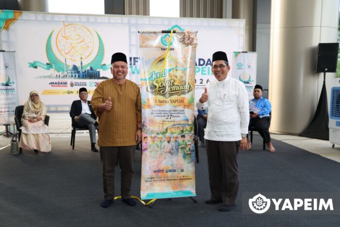 Majlis diteruskan dengan ucapan oleh Pengerusi Lembaga Pemegang Amanah YAPEIM, Tuan Abdul Khudus bin Mohd Naaim, yang turut melancarkan Kempen Jom Solat Jemaah serta menyempurnakan serahan sumbangan kepada warga kerja yang terpilih.