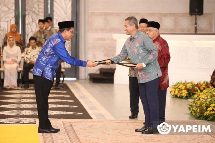 Kuala Terengganu, 11 Mac 2026 – YAPEIM salurkan sumbangan kepada Yayasan DiRaja Sultan Mizan (YDSM) dalam Majlis Pengurniaan Bantuan Kepada Fakir Miskin dan Pelajar Sekolah Sempena Hari Raya Aidilfitri 1447H yang diadakan di Istana Syarqiyyah, Kuala Terengganu.